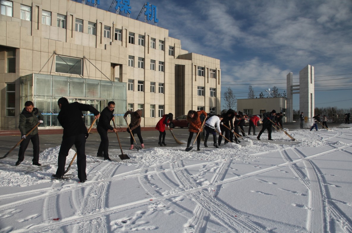 春節過后,一場瑞雪飄然而至,鄂爾多斯地區一片銀裝素裹,這場雪在增加空氣濕度的同時,也給人們的出行帶來了極大不便。2月9日,公司迎來了節后的第一個工作日,同時也迎來了上班后的第一場雪,為了方便廣大員工行走和行車安全,行政管理中心組織集團和煤機公司辦公室人員開展掃雪活動,大家積極響應,拿起掃雪工具,清掃院內的積雪,同事們不畏嚴寒,揮舞著鐵鍬和笤帚,相互配合,你鏟我掃,一點點地將積雪和冰層鏟起集中堆放,在歡聲笑語中掃出了干凈的場區和暢通的大道。經過一 個多小時的辛勤勞動,辦公大樓及宿舍樓周圍的積雪被清掃干凈,使大家在安全行走時增添了幾分好心情。