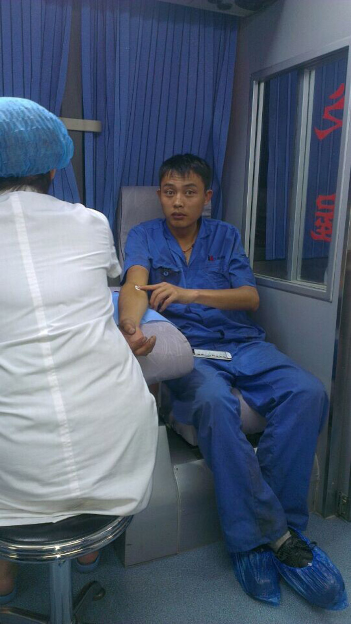 郝禹當即被送往鄂爾多斯市中心醫院,醫生診斷郝禹是動脈盆腔骨折,亟需手術。但醫院AB型血庫存告急,需要馬上組織獻血,醫院將寶如意采血點提供給我公司專用。接到醫院的消息后,巨鼎人在第一時間行動起來。集團公司、煤機公司馬上在內部組織開展愛心獻血活動,同時通過微信、QQ等平臺廣泛擴撒消息,希望得到社會愛心人士的幫助。在大家的共同努力下,消息傳播的非常迅速,公司每個員工的微信朋友圈都被為郝禹愛心獻血的消息刷屏。截止當晚9點,有12名巨鼎員工及10名社會志愿者趕到寶如意采血點獻血。經過篩選,建設公司蔡軍,煤機公司盧小小、巢麗娜、劉帥,集團公司楊世文、張俊以及4名社會志愿者符合獻血條件,在郝禹命懸一線的危難時刻,他們每個人都獻了400CC血,才保證了郝禹手術的用血量。