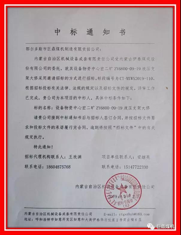 熱烈祝賀煤機公司中標伊泰集團150臺支架大修項目