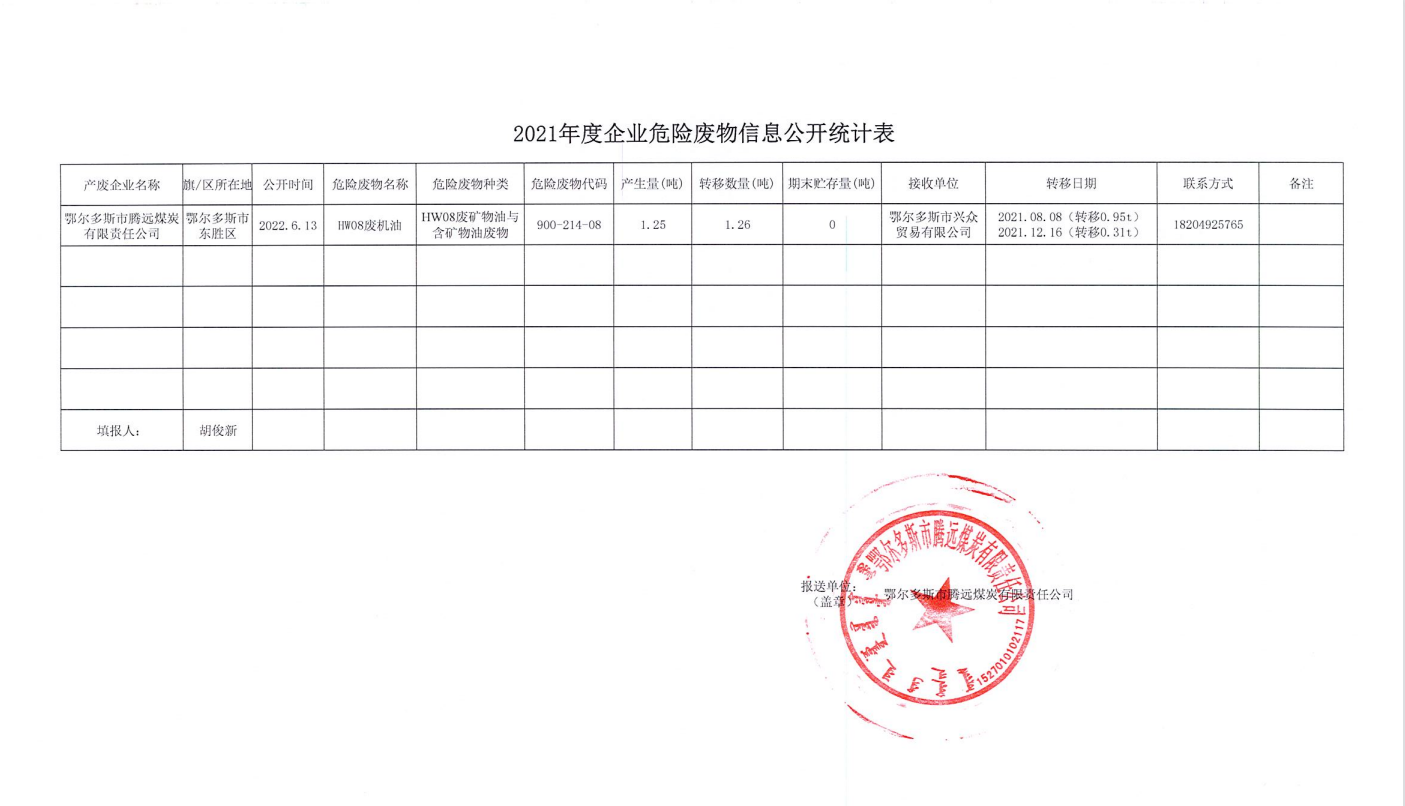 年度企業(yè)危險(xiǎn)廢物信息公開